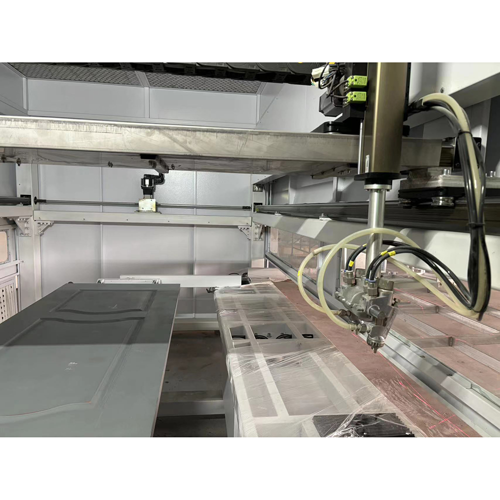 CNC Door Spraying Machine with five axis spray gun control device, which equipped with an electronic control system with five movement directions, mainly controlling the reciprocating direction, height, angle, etc.