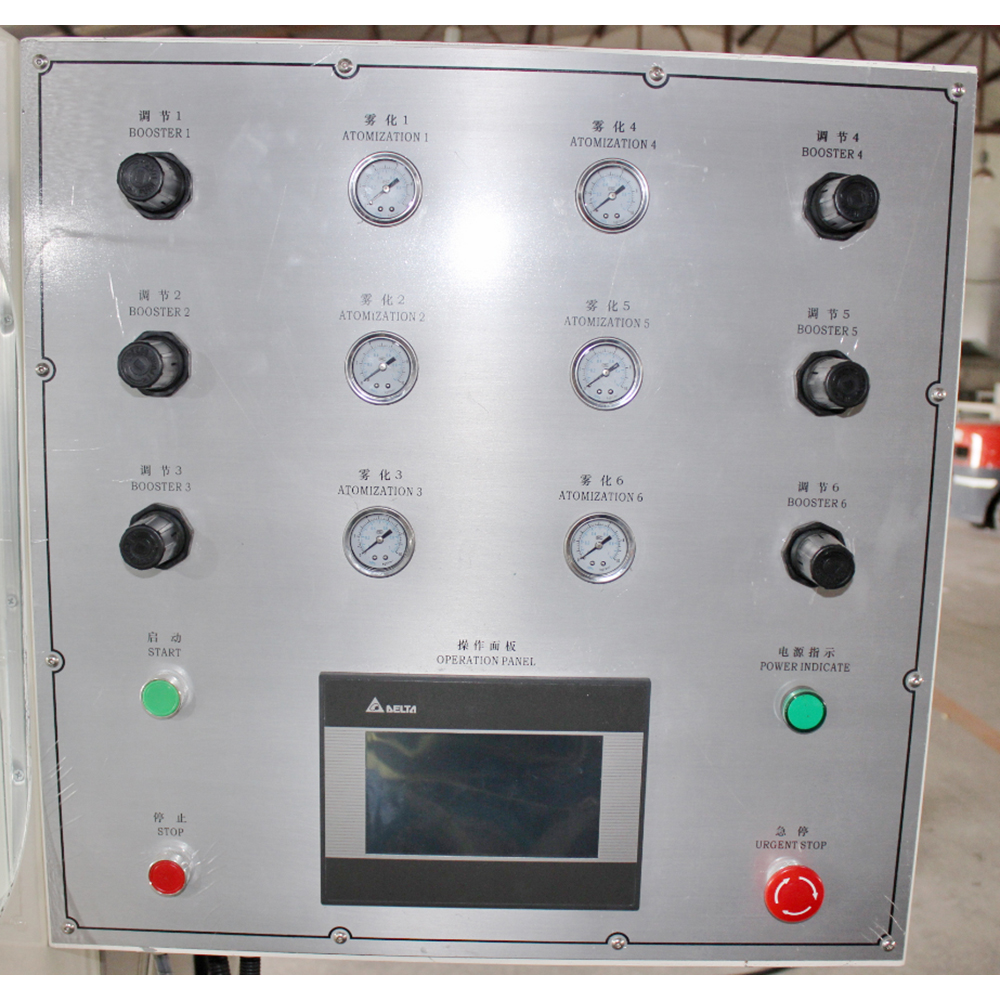 Apply to three surfaces of strip work pieces such as door frame, frame, furniture fittings, kick line, plastic steel and wood plastic line, and spray continuously and automatically for various lacquer materials such as PU NC PVC UV waterborne paint and fluorocarbon paint.