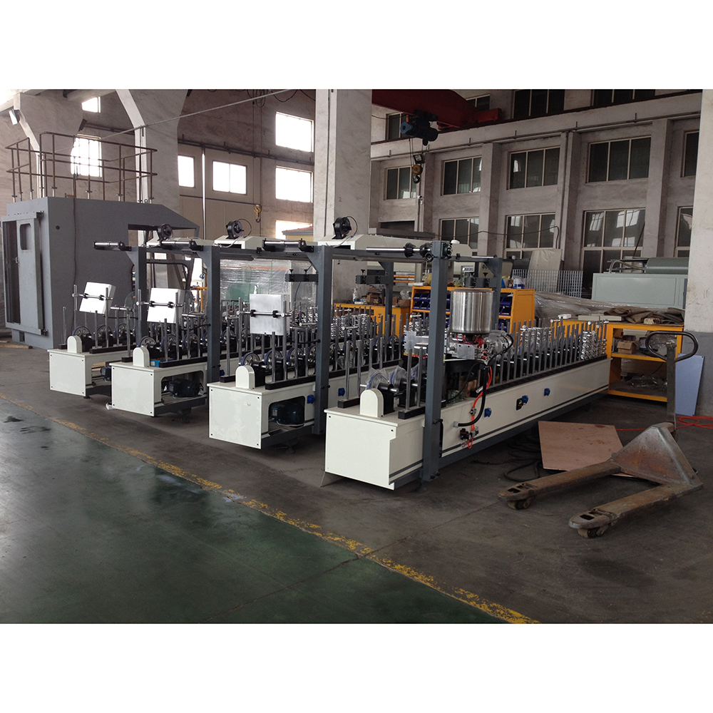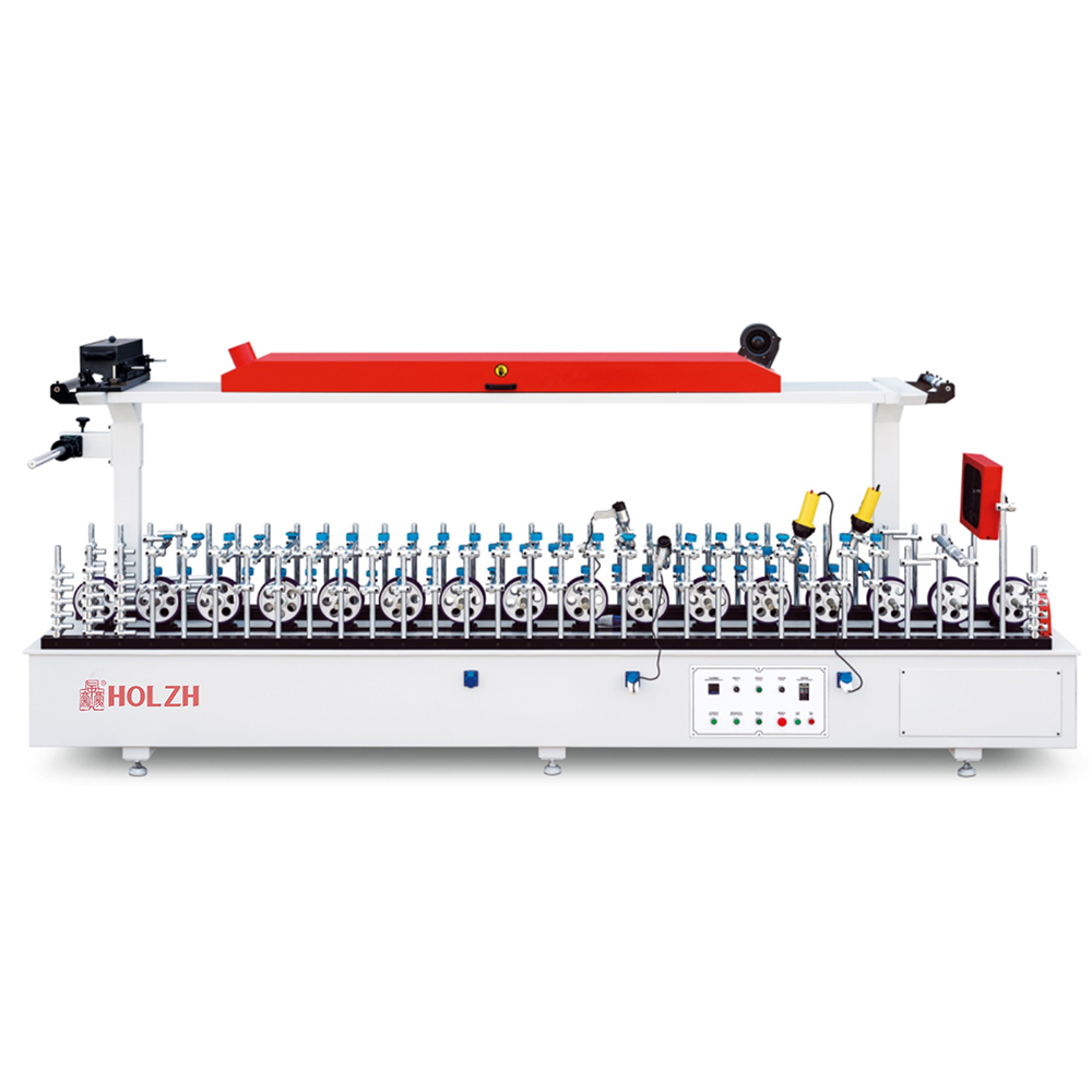 By using various forming pressure wheels to simulate the manual veneering action, surface decorative materials are attached to the surface of the base material. Generally, the center line, the highest point or the lowest point of the profile is selected as the starting point. The pressure wheels are fixed in position point by point and in sequence along the surface contour of the profile to form the envelope line of the profile contour.