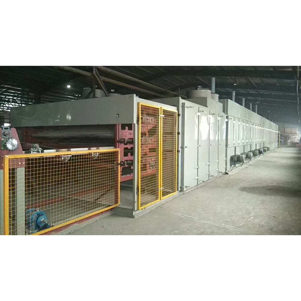 This series veneer dryer introduces the European advanced technology which adopts the volute centrifugal fan (whose flow is up to 45000m3/h and above). The transverse thermal cycle design is applied to the machine. New type heat exchanger and special rectangular variable cross-section spraying box make the high-speed jet airflow acting on the veneer surface uniform. The transmission system and the mesh belt automatic adjustment device refer to German technical data.