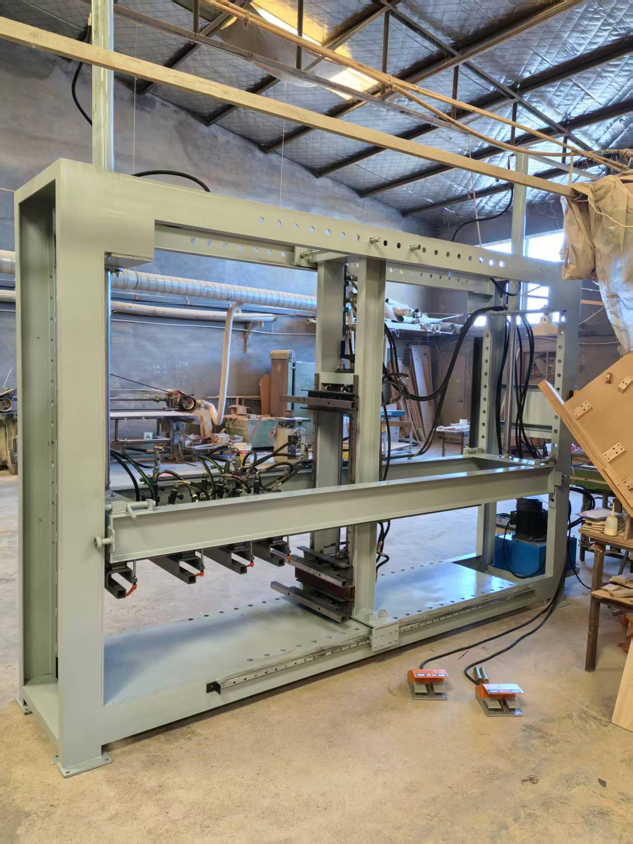 The machine features a heavy-duty steel frame with precision alignment guides, ensuring that side panels, back panels, and shelves are perfectly squared every time. Pneumatic clamping units apply uniform pressure across all joints, preventing warping or gaps. An intuitive control panel allows operators to adjust clamping force and assembly size for different cabinet dimensions in seconds.
